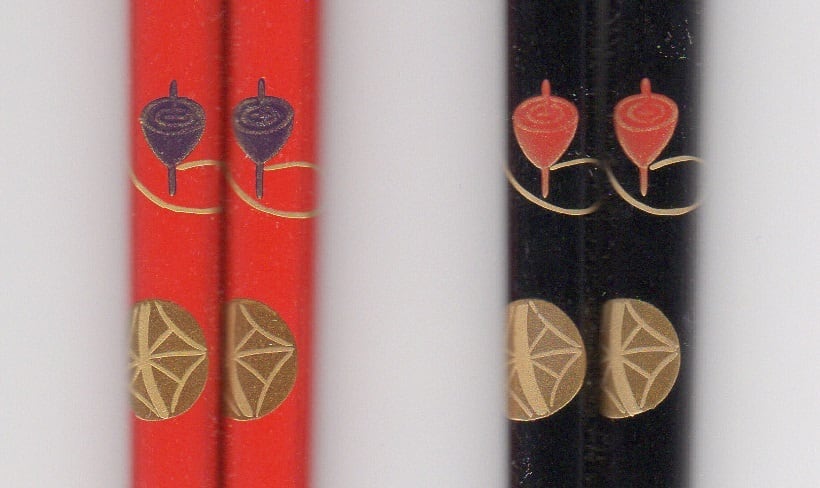 輪島塗 桐箱二膳入 手描蒔絵 独楽とまり