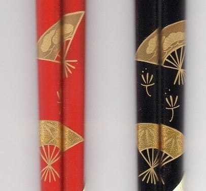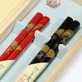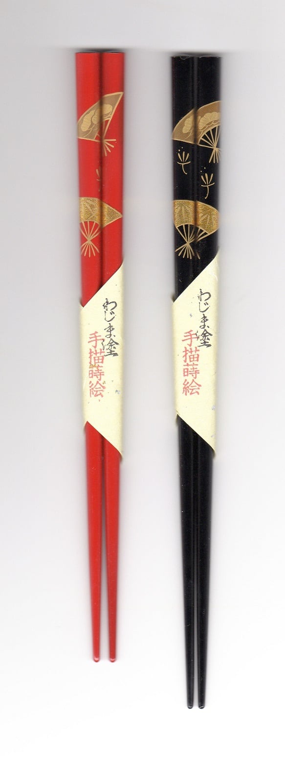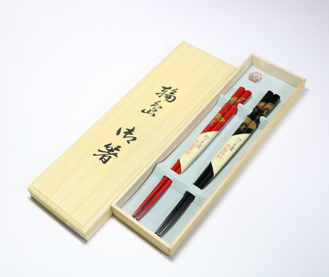 輪島漆箸 桐箱二膳入 手描蒔絵 扇面